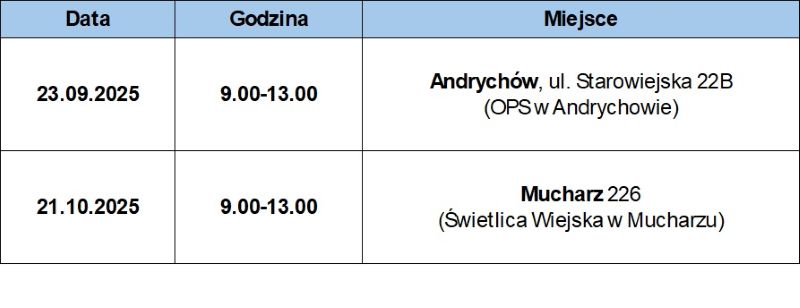MOBILNY PUNKT INFORMACYJNY- 23 WRZEŚNIA ZAPRASZAMY DO ANDRYCHOWA , A 21 PAŹDZIERNIKA DO MUCHARZA