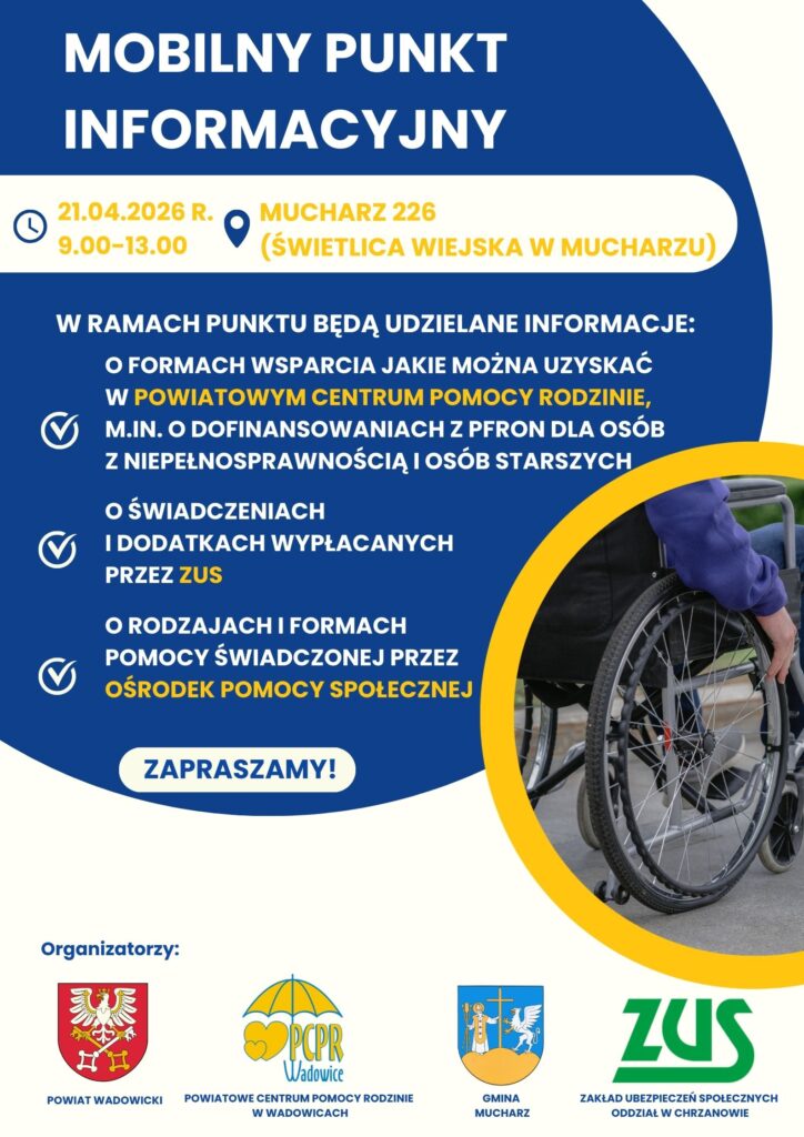 Serdecznie zapraszamy do skorzystania z możliwości wsparcia w ramach Mobilnego Punktu Informacyjnego.