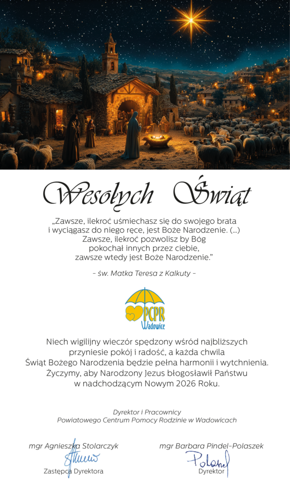 Wesołych Świąt – Powiatowe Centrum Pomocy Rodzinie w Wadowicach